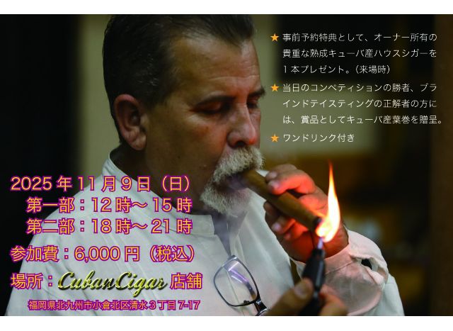 - ★ 当日のコンペティションの勝者、ブラインドテイスティングの正解者の方には、賞品としてキューバ産葉巻を贈呈。