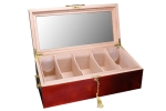 非常に美しい形状のディスプレイヒュミドールです。深みのあるチェリーウッドカラーが、あなたの大切なプレミアムシガーを上品に演出してくれます。蓋がグラストップですので常にシガーの状態を見ることができ、プライベート用に、またレストランやバーカウンター用にもお薦めです。