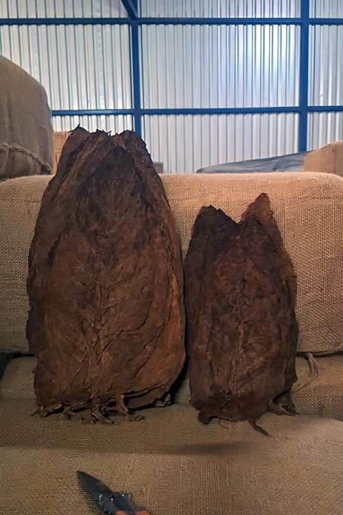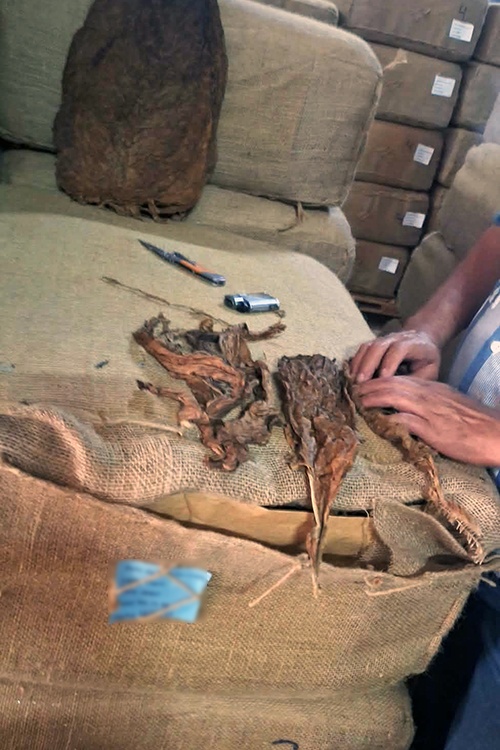 写真は、早速テストスモーキングしている様子ですが、取り出したパカ(麻袋)の葉は燃焼が悪かった様子。実は、このタバコ葉だけを使用したブレンドも考えていたので、燃焼が悪いというのはかなりマイナスポイント。動画ではビソに見えたので、セコはもう少し燃焼性が良いのかもしれません。